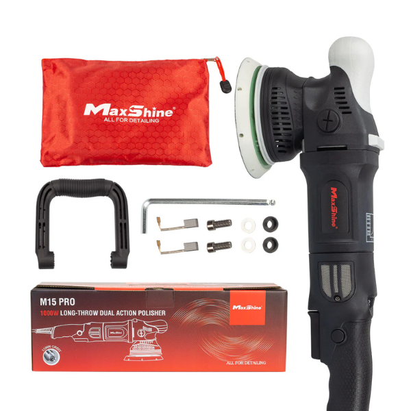 The Dual Action Orbital Polisher (M15 Pro) is engineered for professionals and detailing enthusiasts alike. With a powerful 1000W motor, 15mm throw, and 5-inch backing plate, it offers efficient paint correction while reducing user fatigue. Its precision-balanced design with a CNC counterweight and NSK bearings ensures smooth operation and extended tool life.