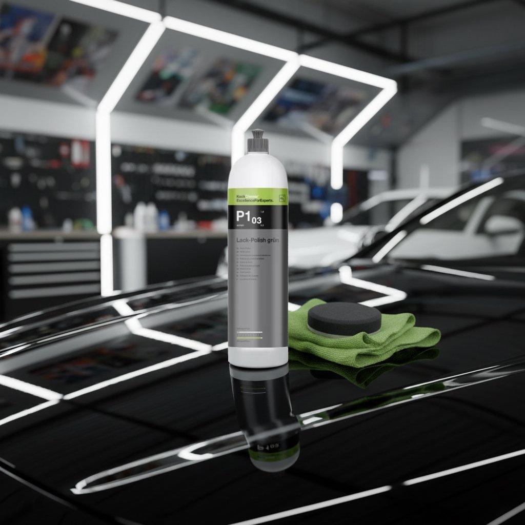 Lack-Polish Grün is a high-gloss, low-cut polish designed to protect, maintain, and enhance new or like-new automotive paintwork. It delivers an exceptional depth of color and gloss while shielding the surface from environmental damage. Ideal for detailers and professionals looking for an efficient finishing polish.